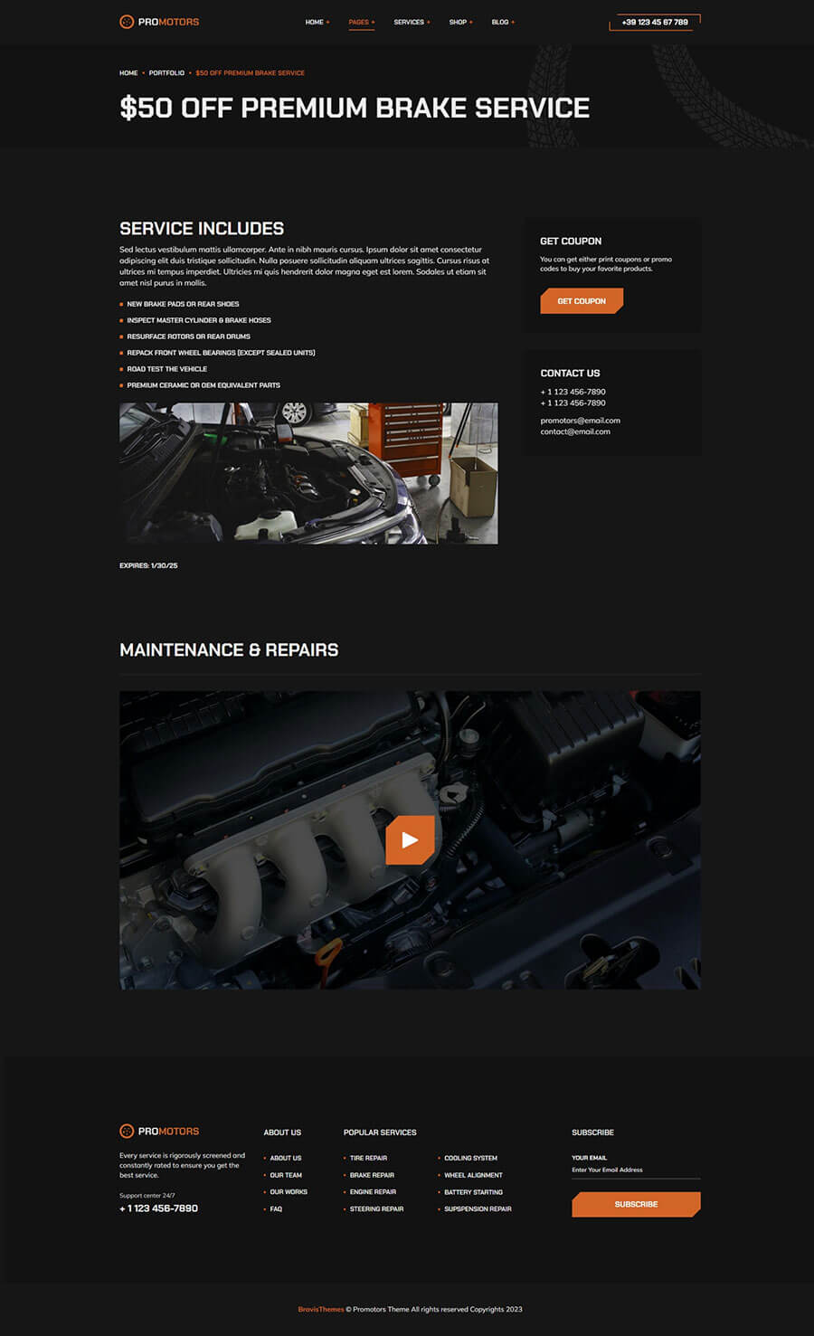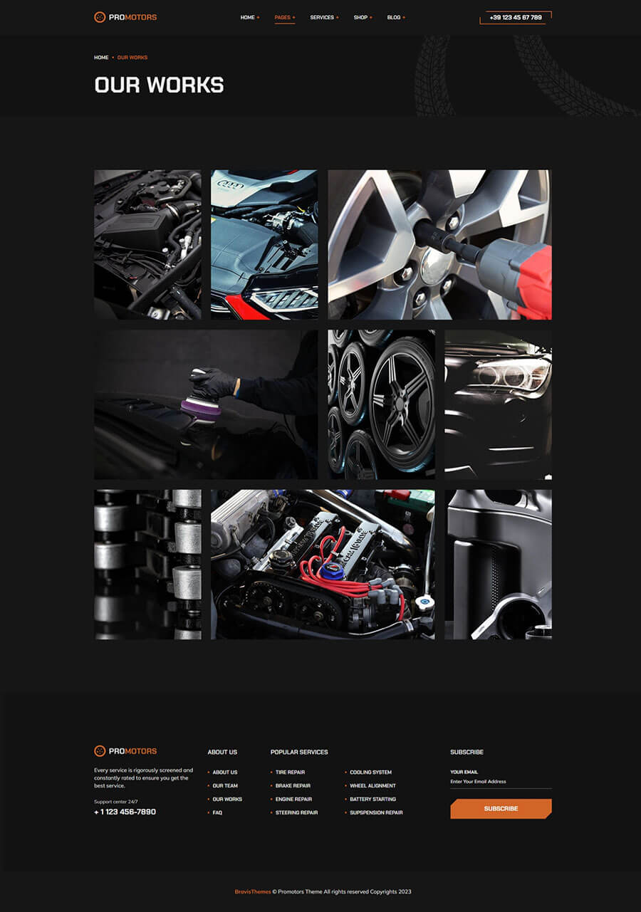 This theme can be used for Auto Mechanic, Car Repair Shops, Garages, Mechanic Workshops, Auto Painting and other Auto and Car related services.